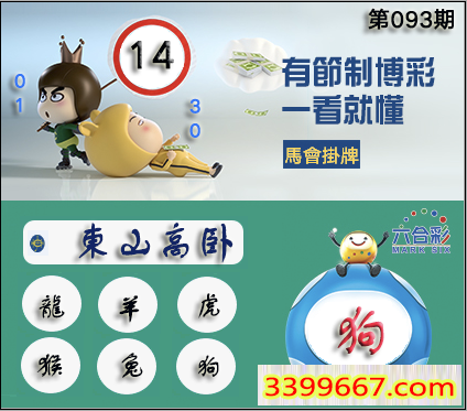 093期正版彩图挂:14 爆:狗 挂牌成语:东山高卧 挂牌出肖:龙羊虎猴兔狗