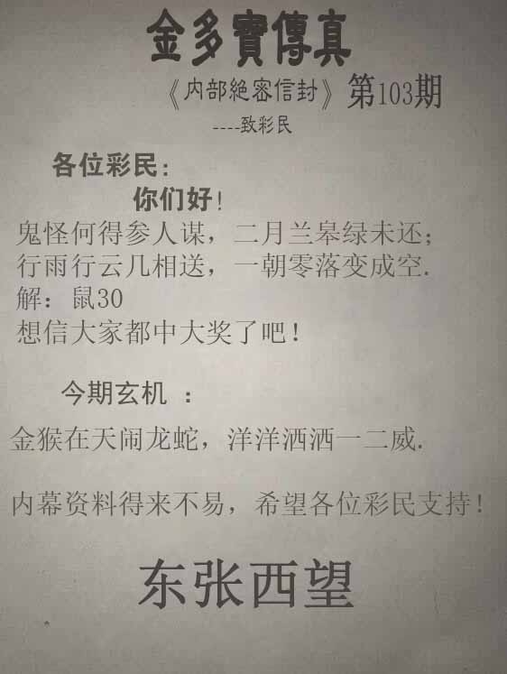 | 主题 :103期:金多寶傳真 |