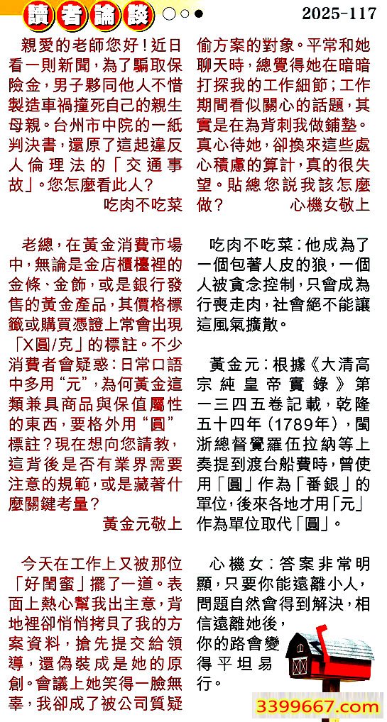 117期:彩民推荐〖貼信讀者論壇〗